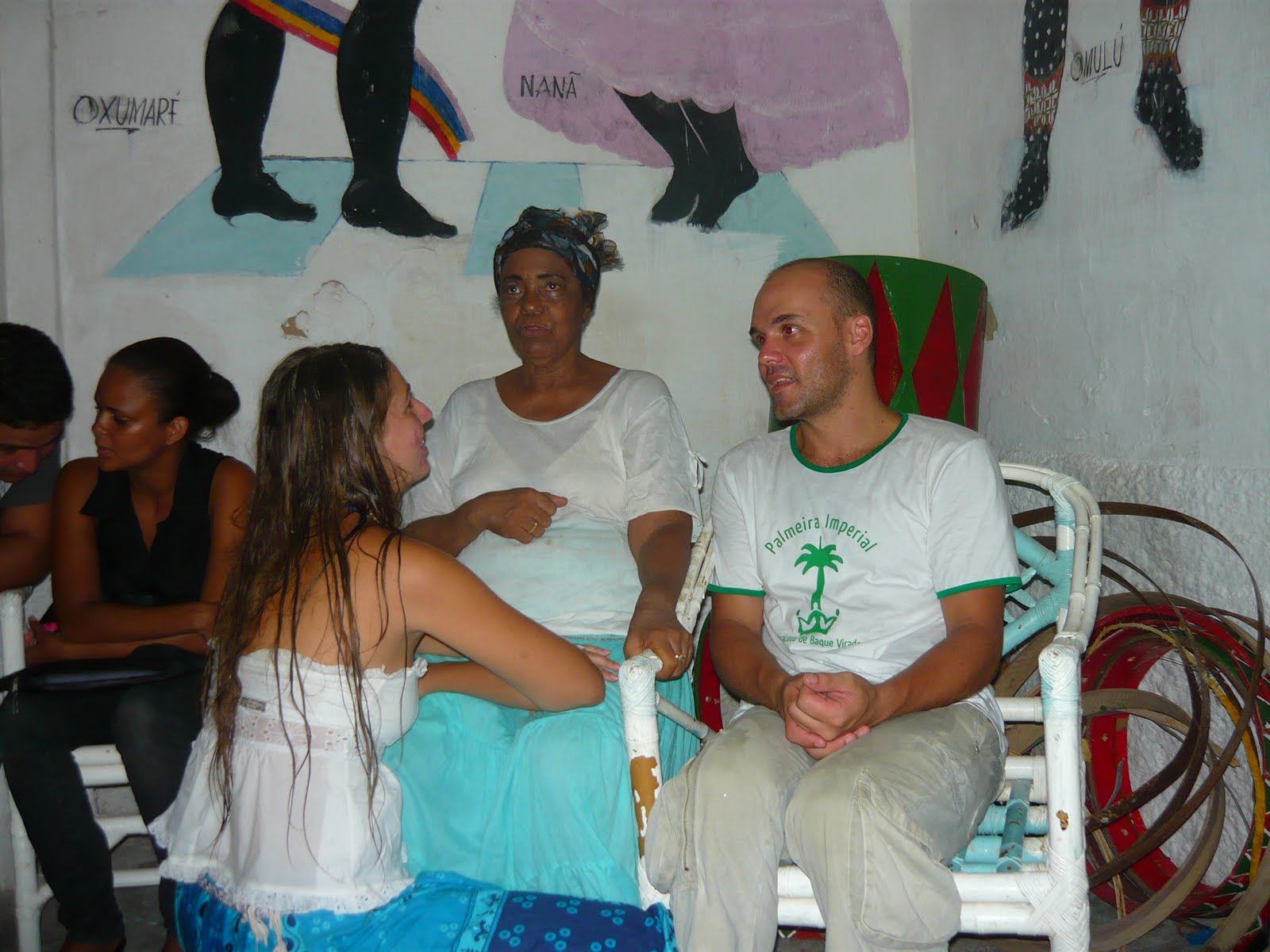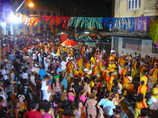 Na segunda-feira, mais compras e oficinas na manhã. À noite, o Shacon nos convidou a participar da obrigação do Carnaval. Segundo ele, é preciso conhecer o lado religioso para entender realmente como é o maracatu da Nação Porto Rico. Após a cerimônia, fomos a Olinda acompanhar a Noite dos Tambores Silenciosos de lá, comandada pelo Mestre Afonso, na Nação Leão Coroado. Festa emocionante, em que encontramos alguns amigos e tivemos oportunidade de conversar melhor com a Dona Olga, da Nação Estrela Brilhante de Igarassu. Depois disso, cerveja, chuva e, claro, a difícil volta pra casa.