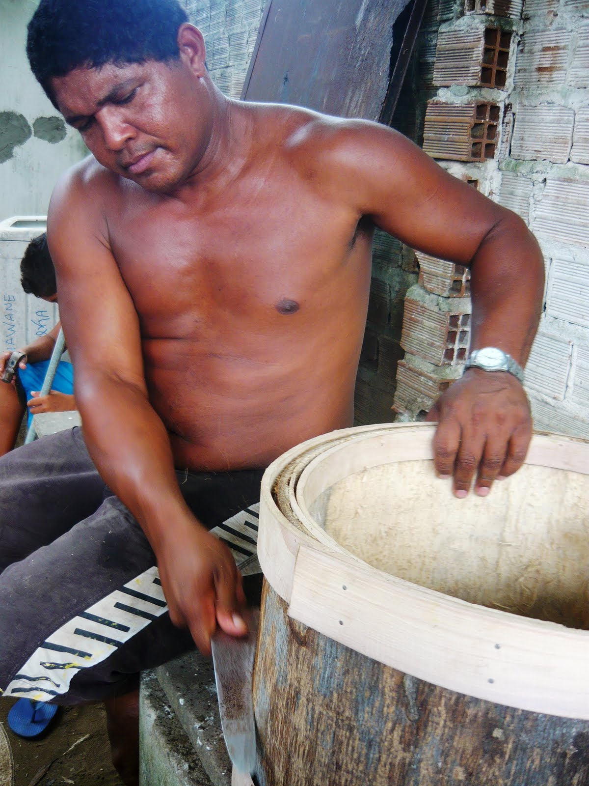 A cidade velha de Igarassu é uma das mais bonitas que há. Sem a badalação de Olinda, ela ainda conserva o ar tranquilo de cidade pequena. Uma jóia. Compramos instrumentos, vimos o mestre trabalhar neles, conversamos com a galera, conhecemos a sede (na verdade, o mestre Gilmar precisou arromba-la para isso) e viajamos de volta a Recife juntos. Delícia de passeio.