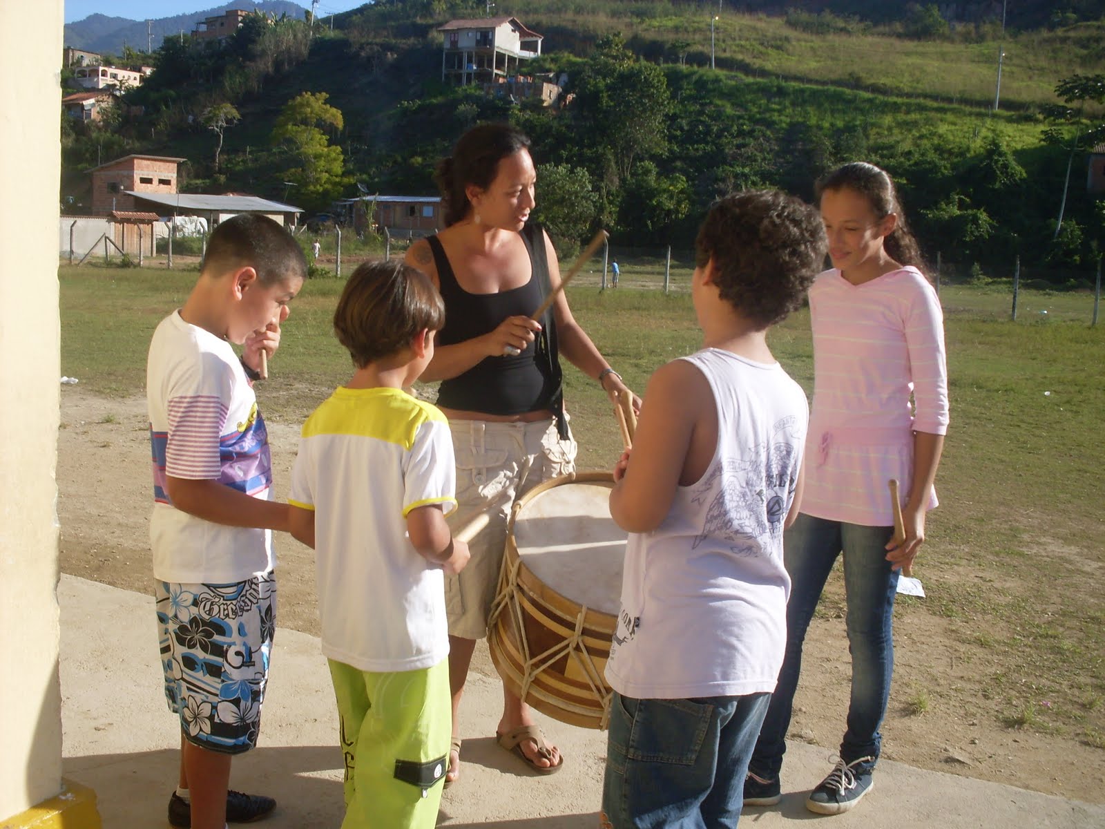 O Palmeira começou um trabalho de oficinas de maracatu nas comunidades mais afastadas da cidade de Paraty, como contrapartida ao Minc pela viagem a Recife no começo do ano. Trabalhar com crianças é sempre muito prazeroso, principalmente em se tratando de levar a elas o prazer de tocar tambor. As fotos aqui publicadas são da primeira dessas oficinas, na escola do Pantanal.
