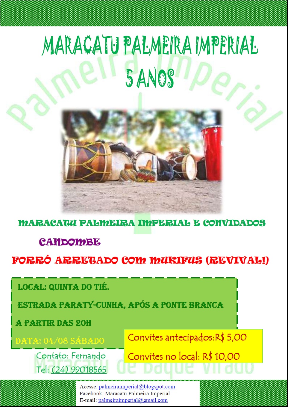 Sexta-feira, às 22h, tem arrastão do Palmeira Imperial. A concentração será em frente à Igreja de Nossa Senhora do Rosário, . É o maracatu de baque virado na Flip!